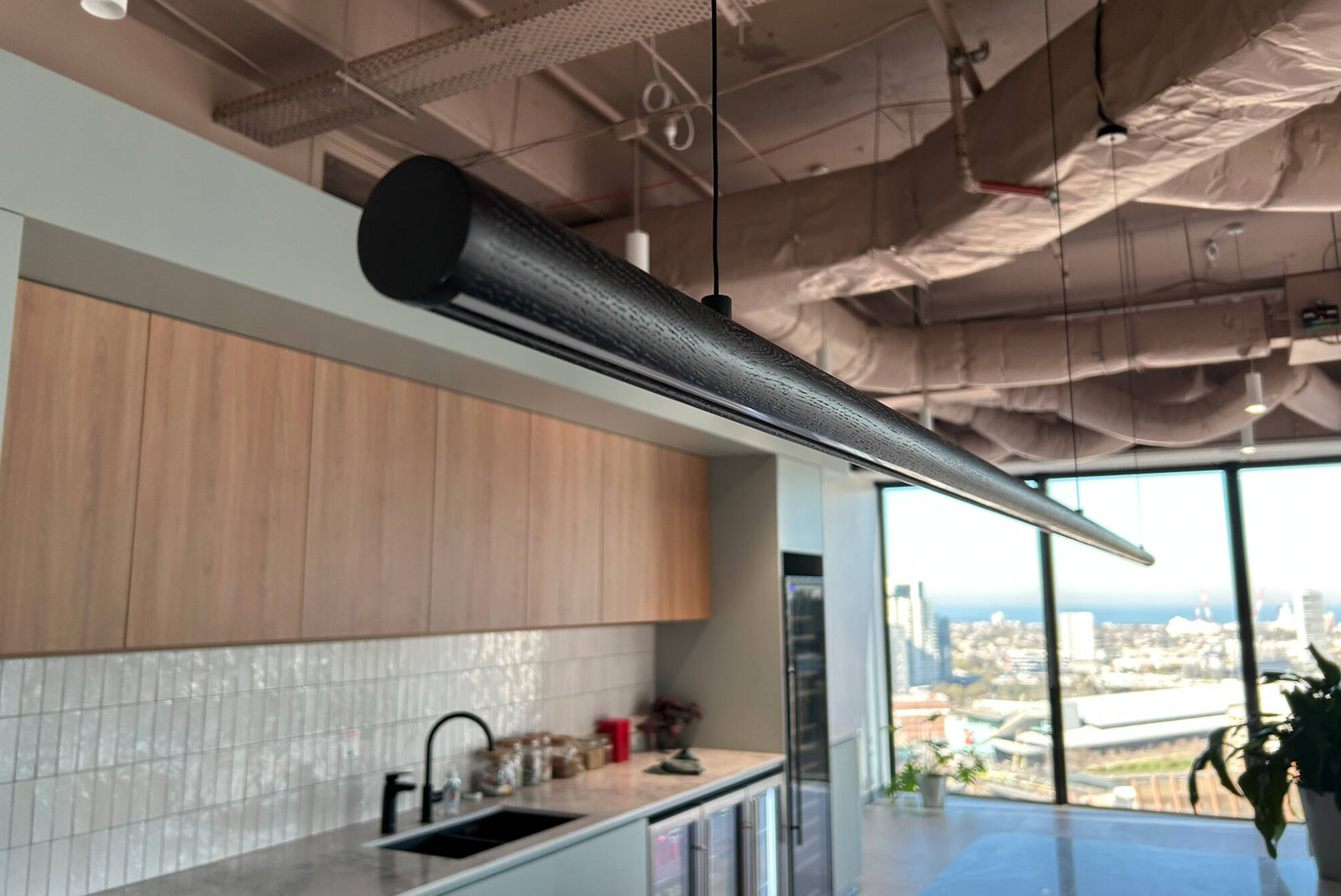 Softly tapered on a ten-degree angle with the right amount of sleek-meets-statement, this is the Tenn Linear Pendant Light. The Tenn Pendant epitomises modern ambience, perching above kitchen islands and dining tables with an understated hardwood timber body. Available in lengths up to 3 metres, every Tenn Pendant is handcrafted to order to your custom requirements.