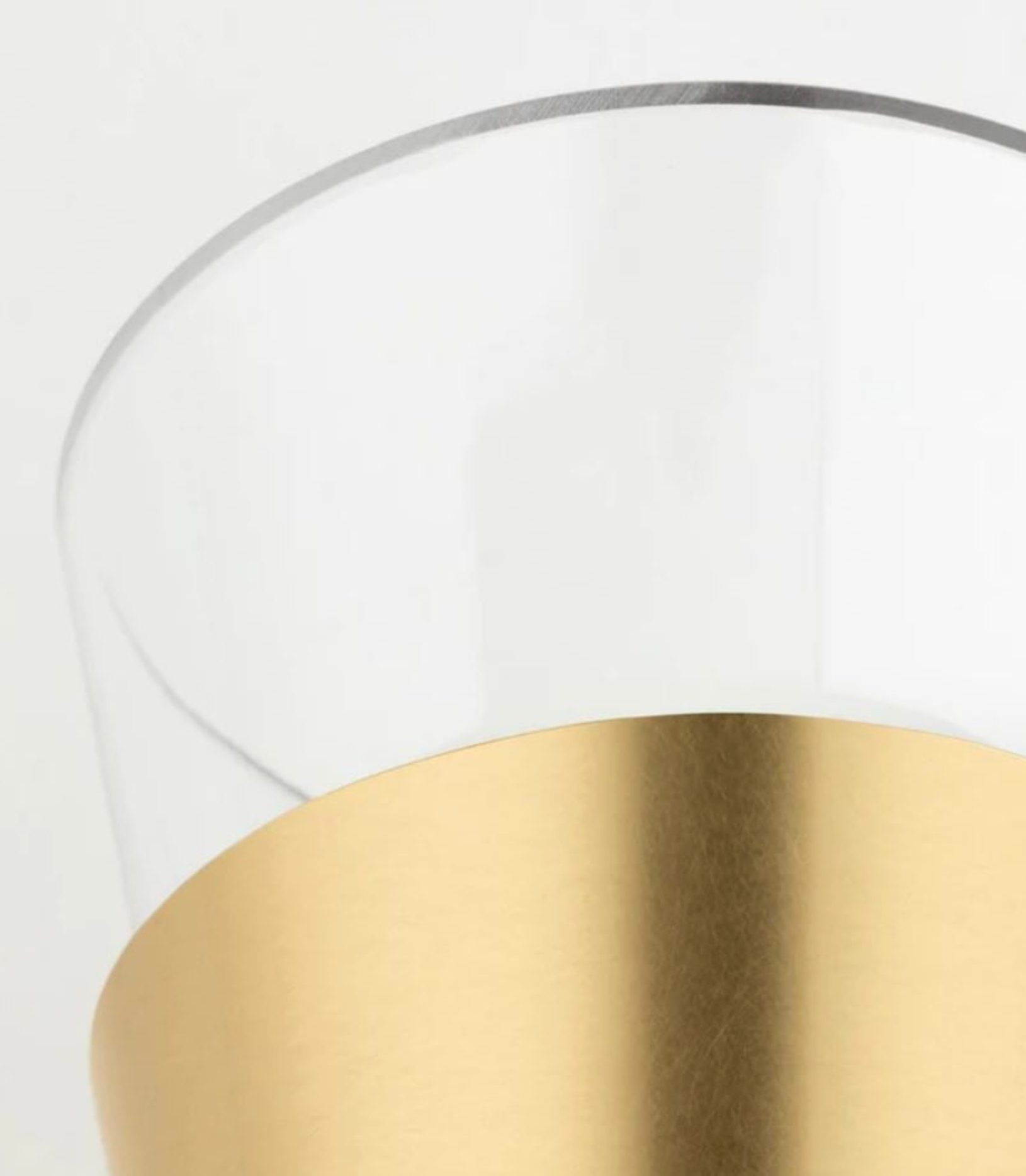 Inspired by the runway, Angie features a metal-wrapped asymmetrical glass shade with a cinched waist for dramatic effect. Available in different styles and finishes, Angie can go from soft and warm in aged brass or cool and captivating in polished nickel. Talk about a style chameleon!