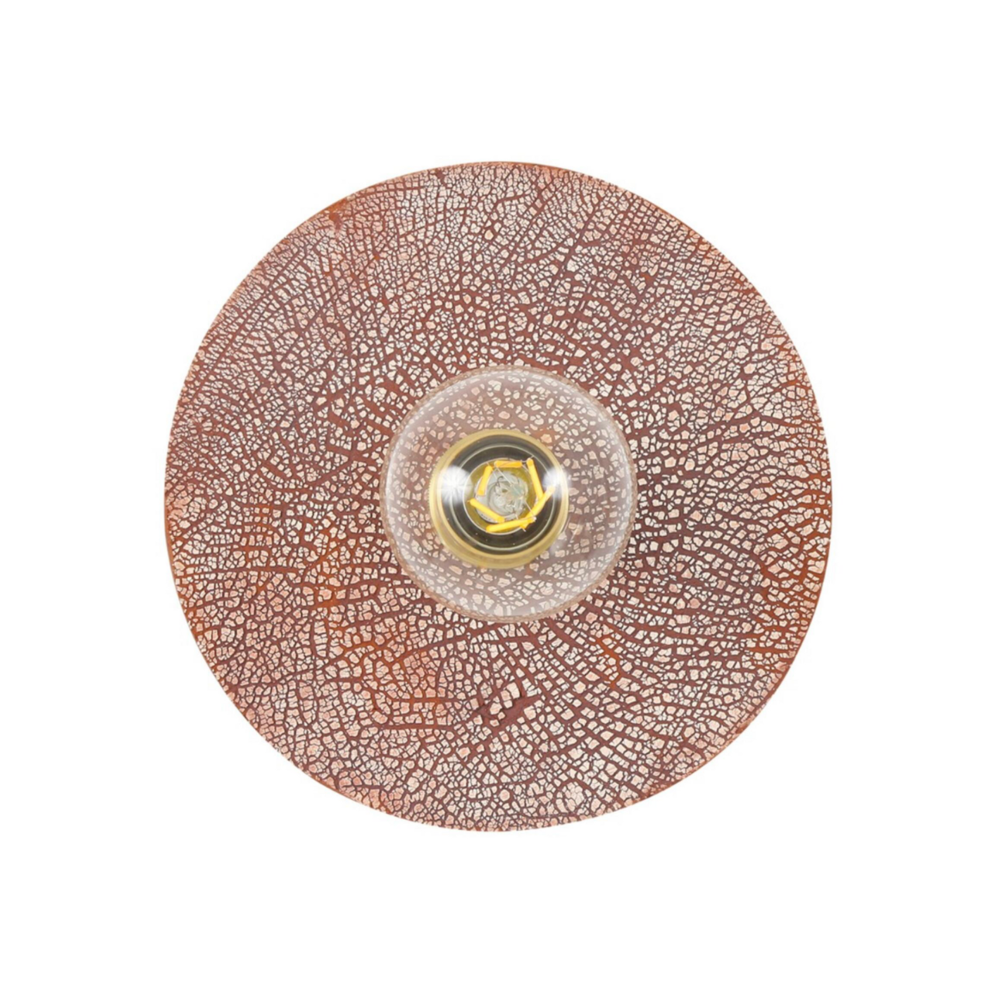 The rustic Red Iron colour finish of this circular wall lamp brilliantly reveals the ceramic shade's coarsely crackled pattern. The Bog Oak wall sconce is a decorative complement to bare walls and measures 28cm in diameter.