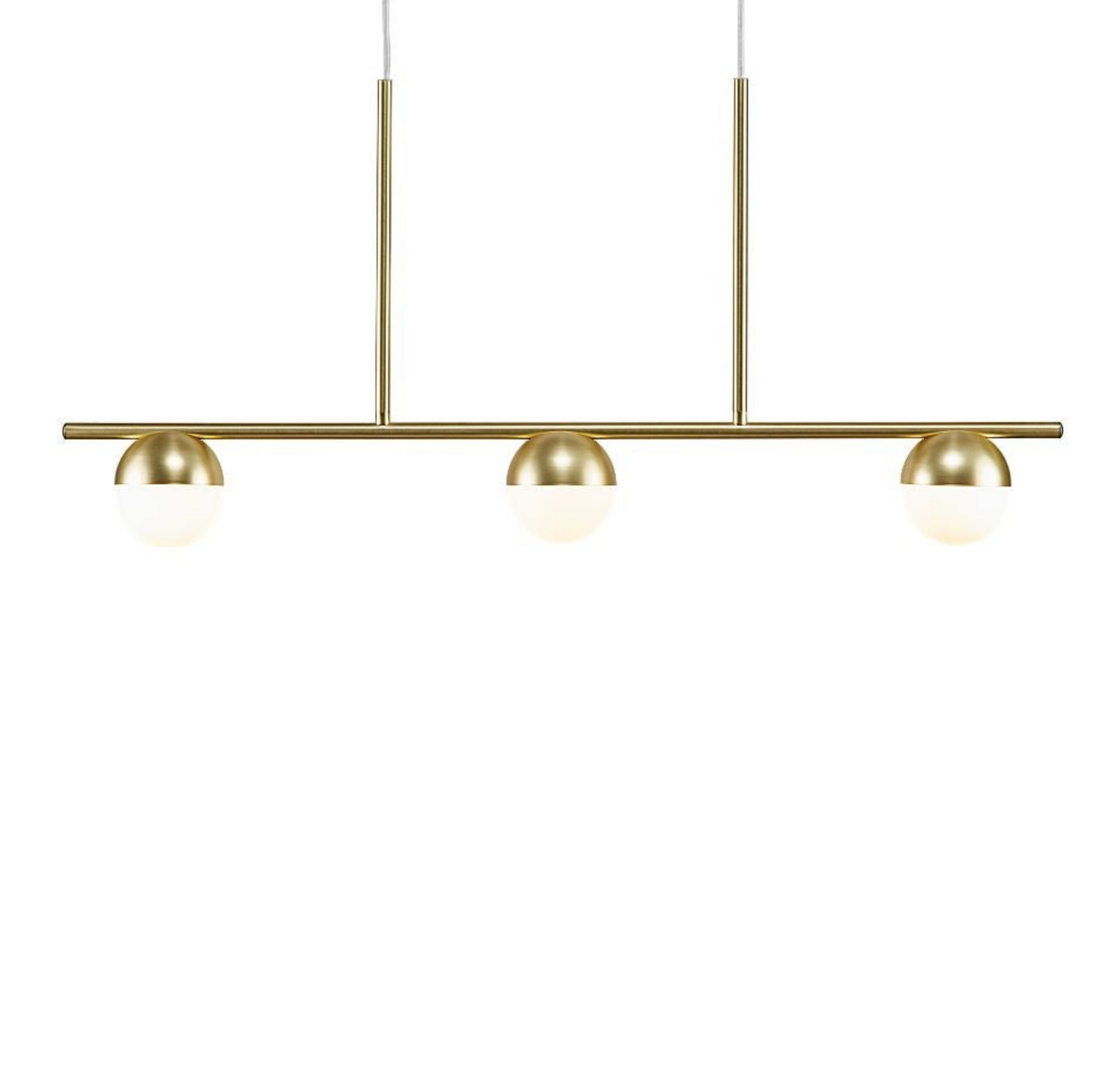 Contina is an exclusive long pendant with three light sources in the most beautiful brass, which adds warmth and cosiness to the bright Nordic decor. With the slim design, the pendant does not cut the visibility or take up any unnecessary space in the room, and therefore, it is perfect above the long dining or kitchen table.