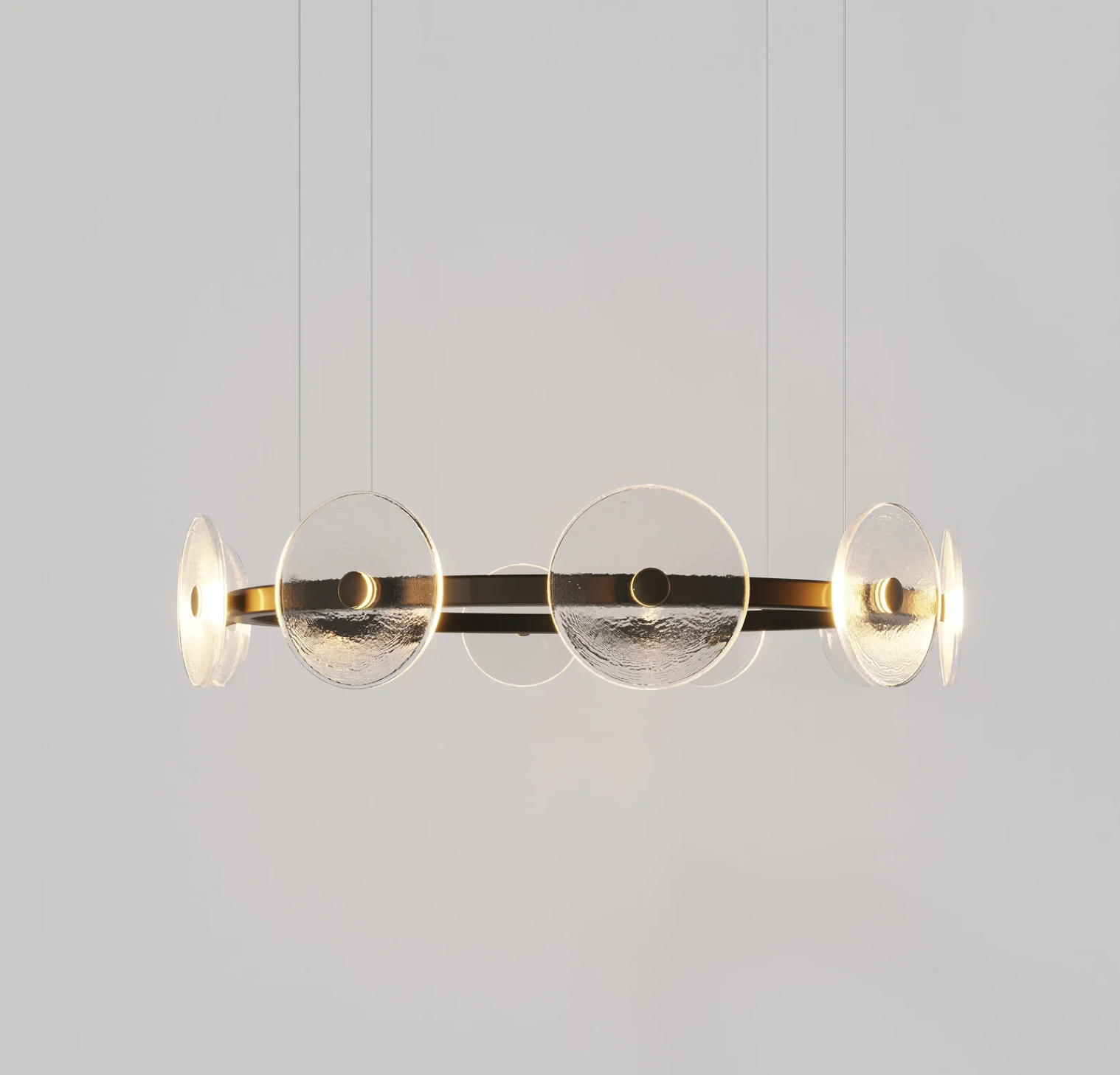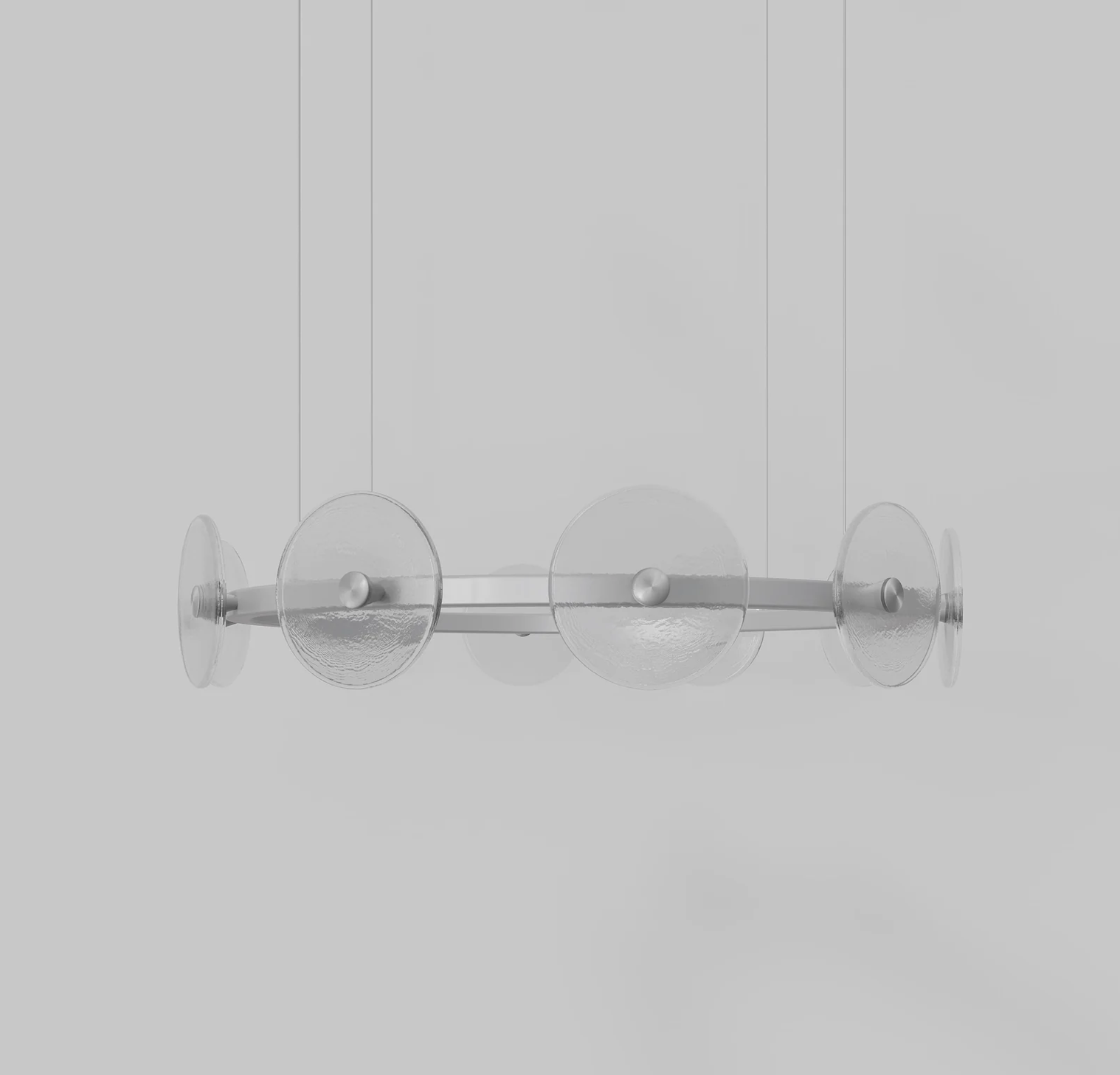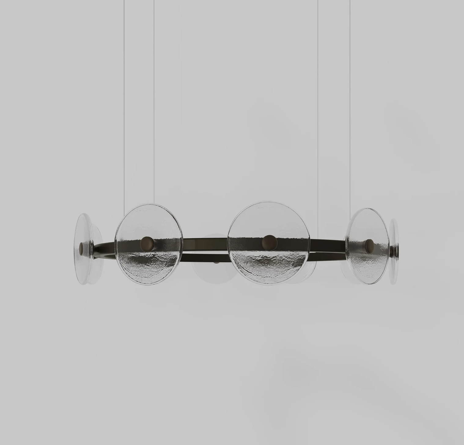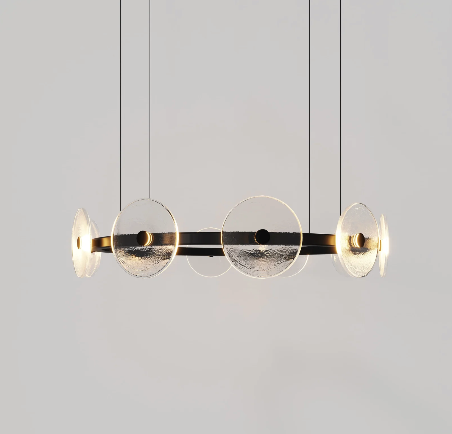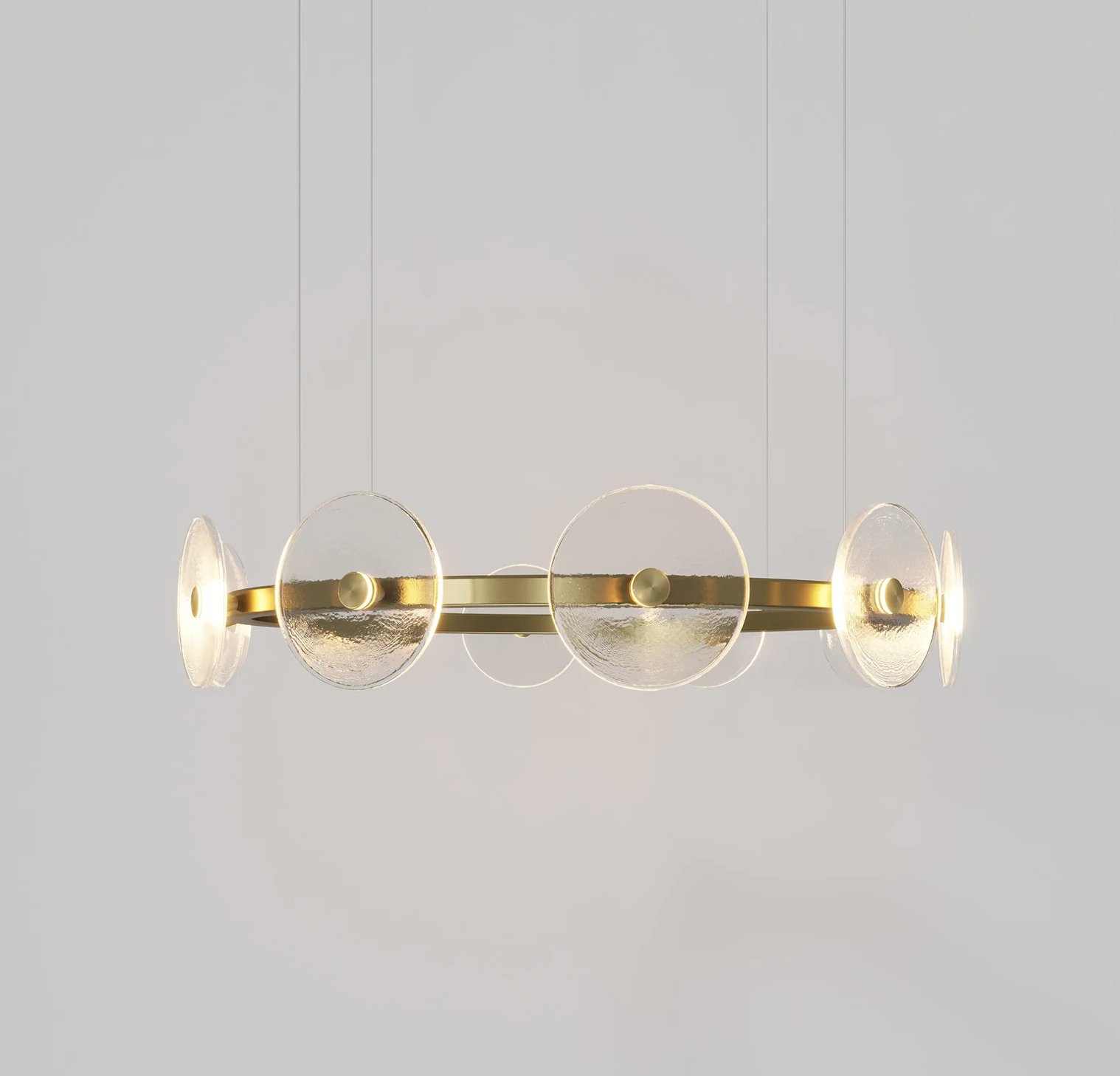 Adorn your space with the remarkable Coral Ring 10 pendant light. The circular ring base, available in a brass finish, matte black, matte white, and medium bronze finishes provides a striking canvas for the arrangement of ten individual hand-blown glass discs. This ring of modern art adds a distinctive touch of opulence to any space, particularly suited for hanging above dining tables, kitchen islands, or within an office space. Choose from a frosted or clear finish and set the mood of your space with a choice of warm, warm white, or white LED temperatures. Meticulously hand-blown using premium Swedish clear glass, each disc carries the distinctiveness of SOKTAS Glass designs, promising an unparalleled and personalised lighting masterpiece that adds both elegance and character to your space.