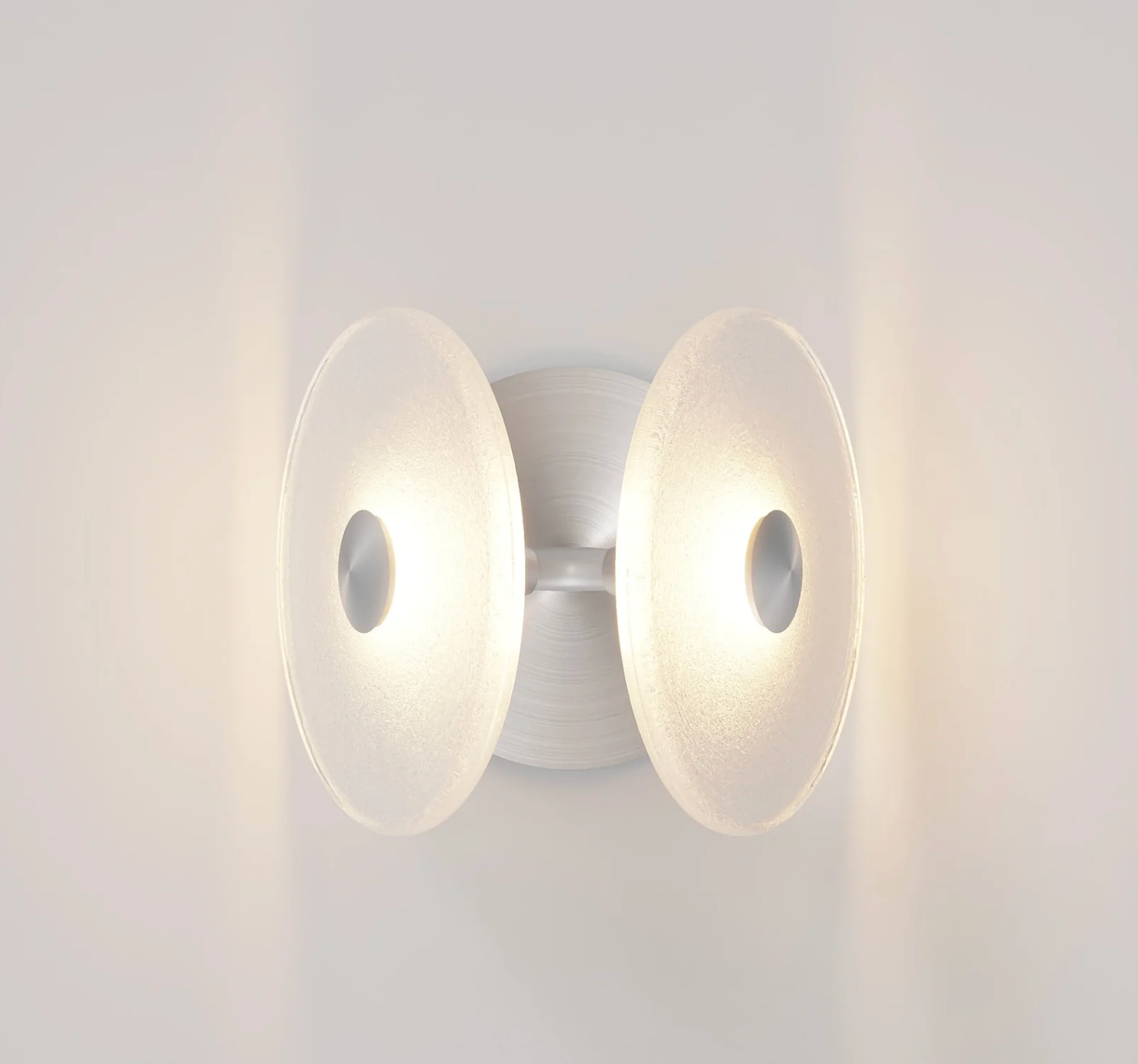 Embellish your walls with the Coral Twin wall light, available in both clear and frosted finishes. This statement piece adds a modern contemporary feature ideal for kitchens, bedrooms, bathrooms and entryways. Tailor it to your preferences by selecting a wall plate finish of brass finish, matte black, matte white, medium bronze or steel finish and set the mood of your space with a choice of warm, warm white, or white LED temperatures. Meticulously hand-blown using premium Swedish clear glass, each disc carries the distinctiveness of SOKTAS Glass designs, promising an unparalleled and personalised lighting masterpiece that adds both elegance and character to your space.