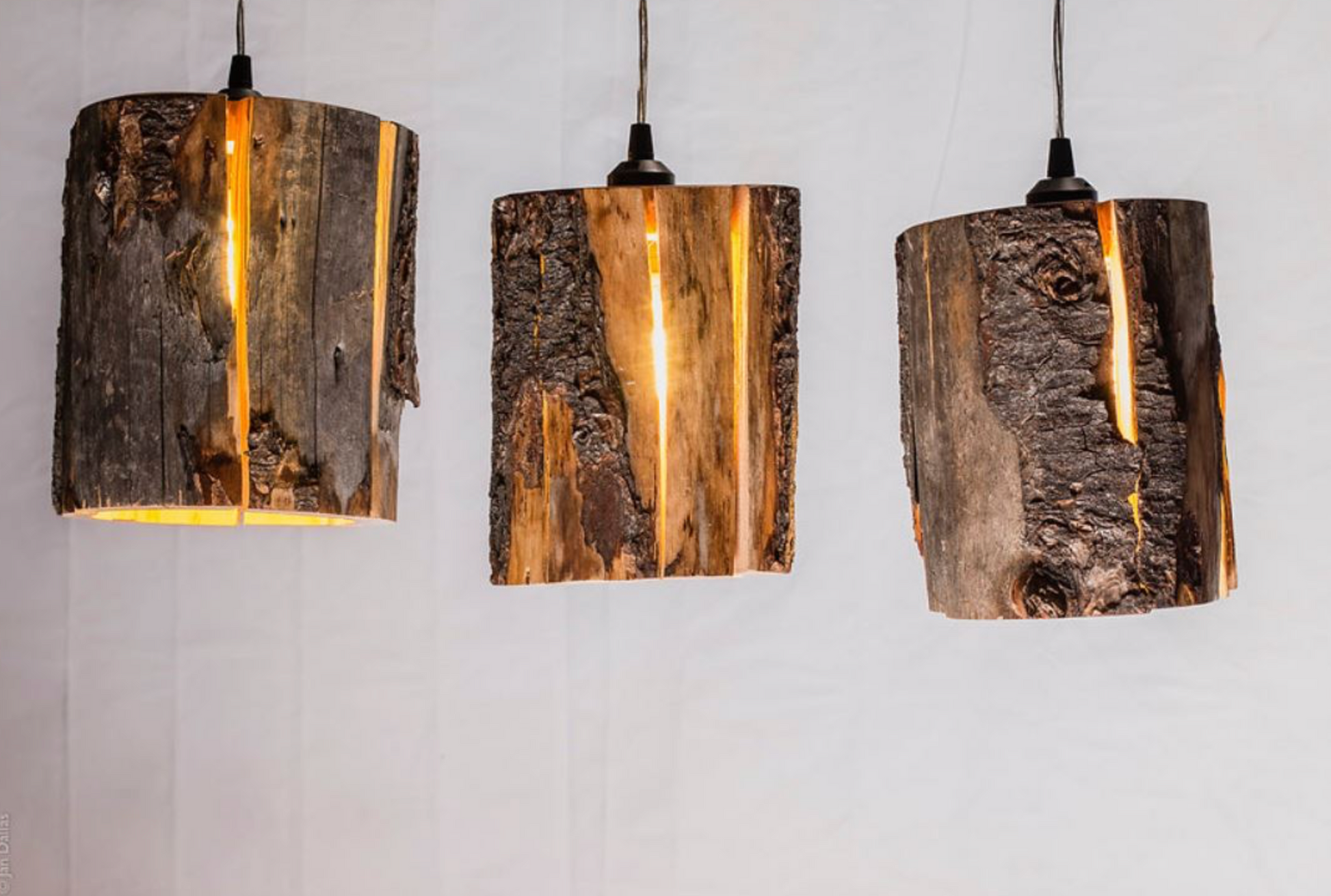 The Cracked Log pendant lights are made from salvaged logs which would otherwise have been burnt. These lamps embrace, rather than avoid the naturally occurring cracks in refuse logs. By turning them into a vessel for light, we can bring the outside in, and be reminded of our intrinsic connection with nature.