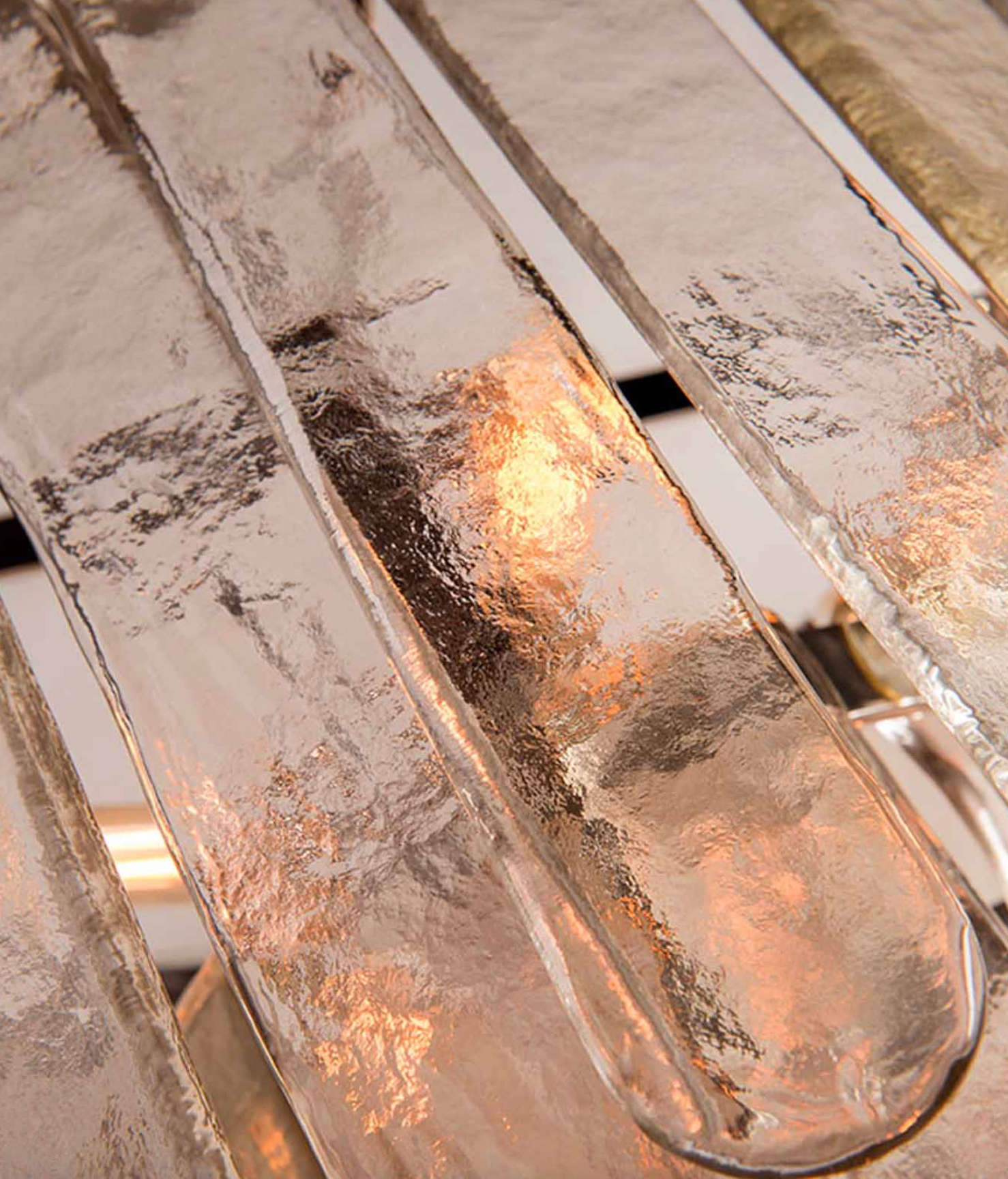 The trial-and-error nature of Hudson Valley’s creative process made Fenwater a delightful discovery, where t heir artisans poured molten glass into moulds of three different lengths leading to an end product that exceeded its initial intent.