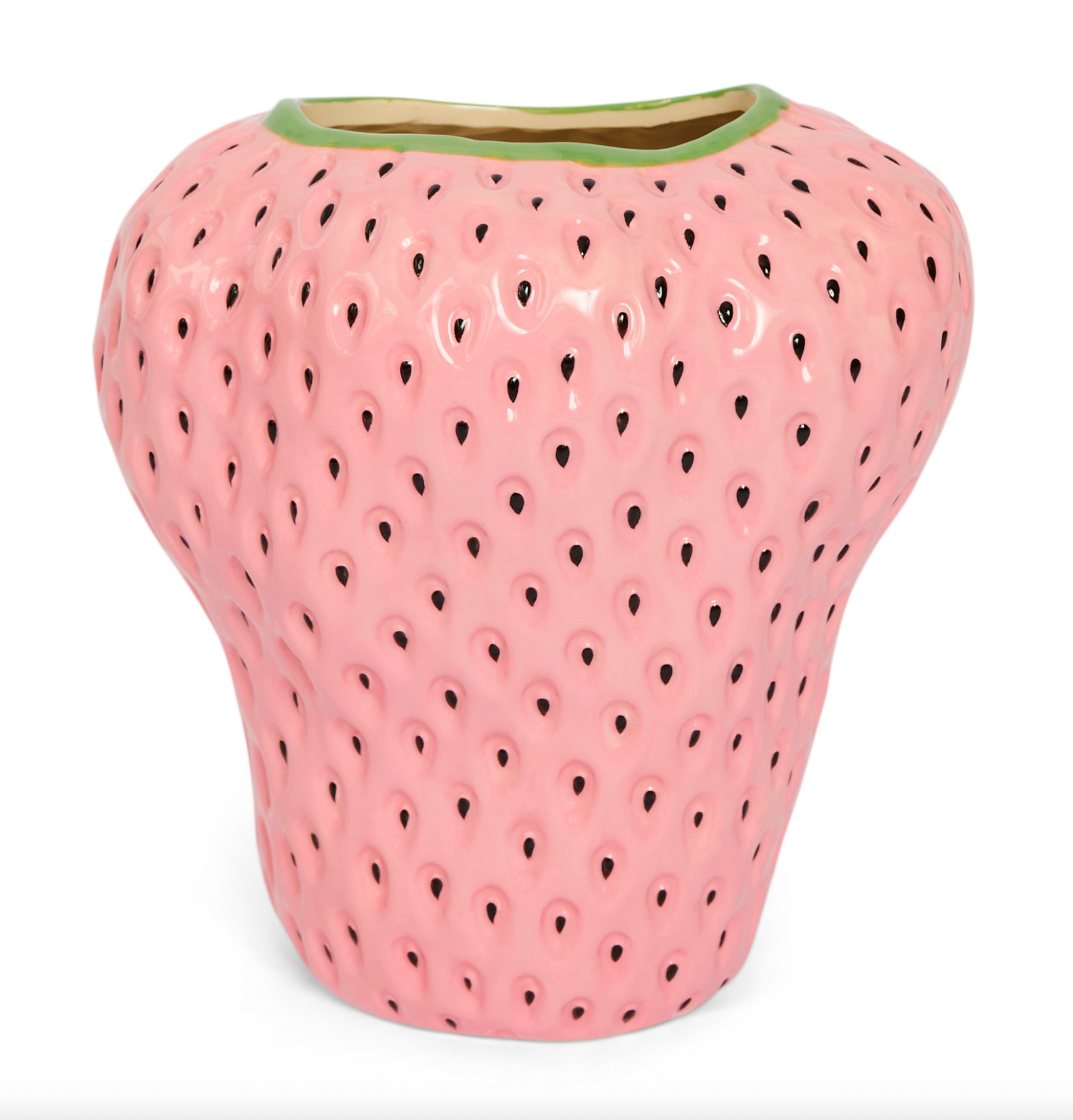 Add a touch of fruity fun to your decor with our Pink Pineberry Vase. Whether filled with fresh flowers or standing solo, this vase is very much a statement piece. Shaped like a plump, pink strawberry, this adorable vase is perfect for showcasing your favourite blooms or simply adding a pop of playful colour wherever it is perched. Its pretty pink hue and charming design is sure to sweeten up any space. Bring home this berry beautiful piece and let your floral arrangements be the pick of the patch!