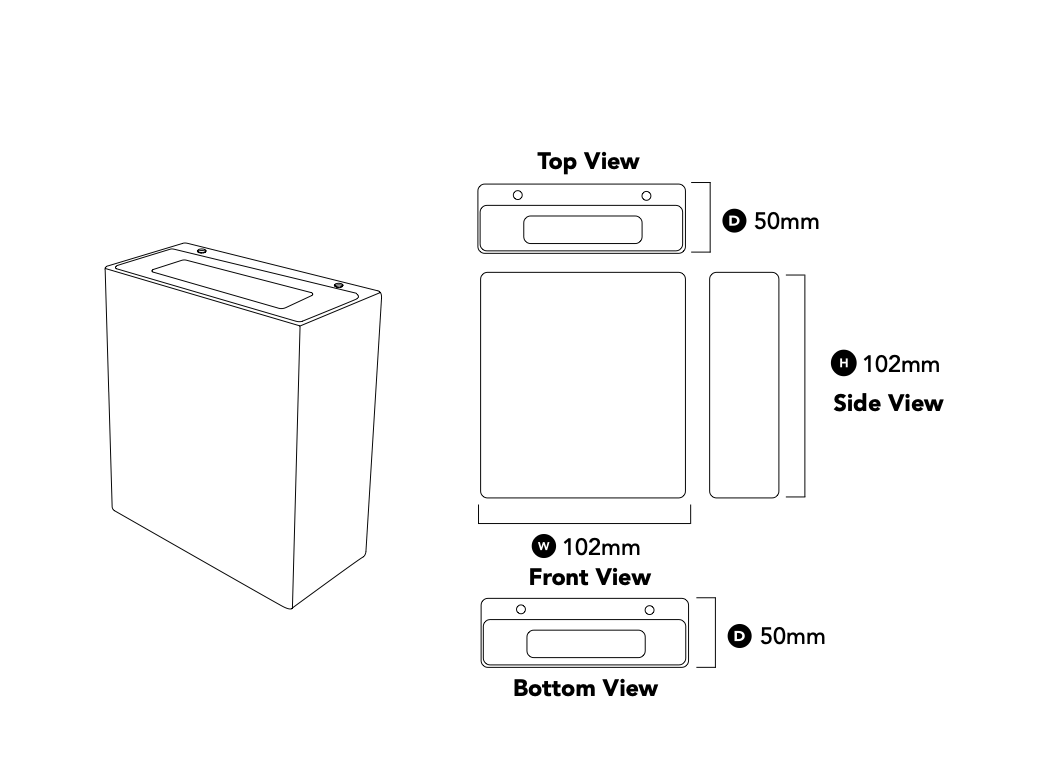 Dimensions: (cm) 10.2 (W) x 10.2 (H) x 5 (D)