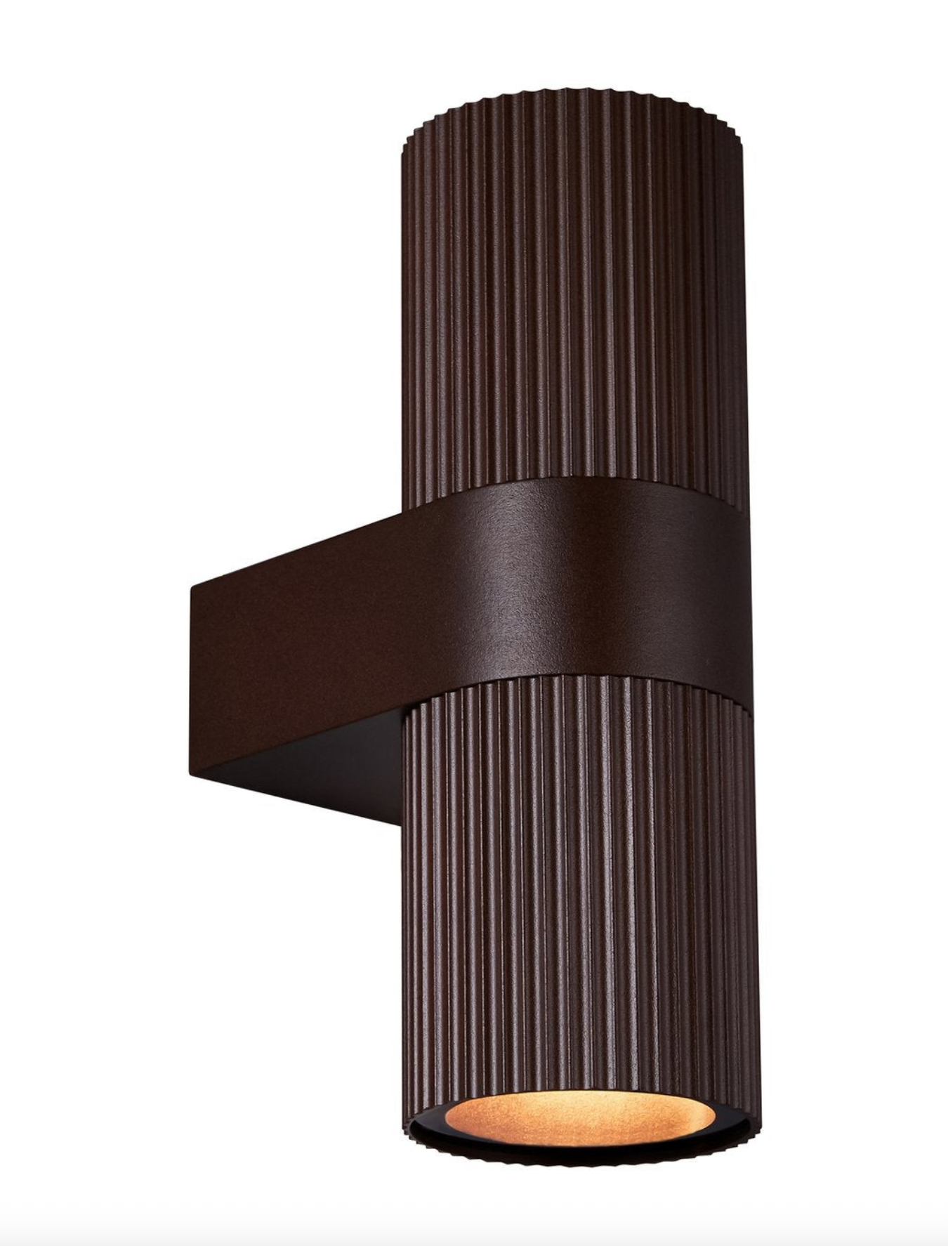 Kyklop Ripple is a modern and elegant wall light designed by Danish design duo Says Who. Light is cast both upwards and downwards, creating an interesting lighting effect on the wall. Made from brown metal with a beautiful rippled surface.