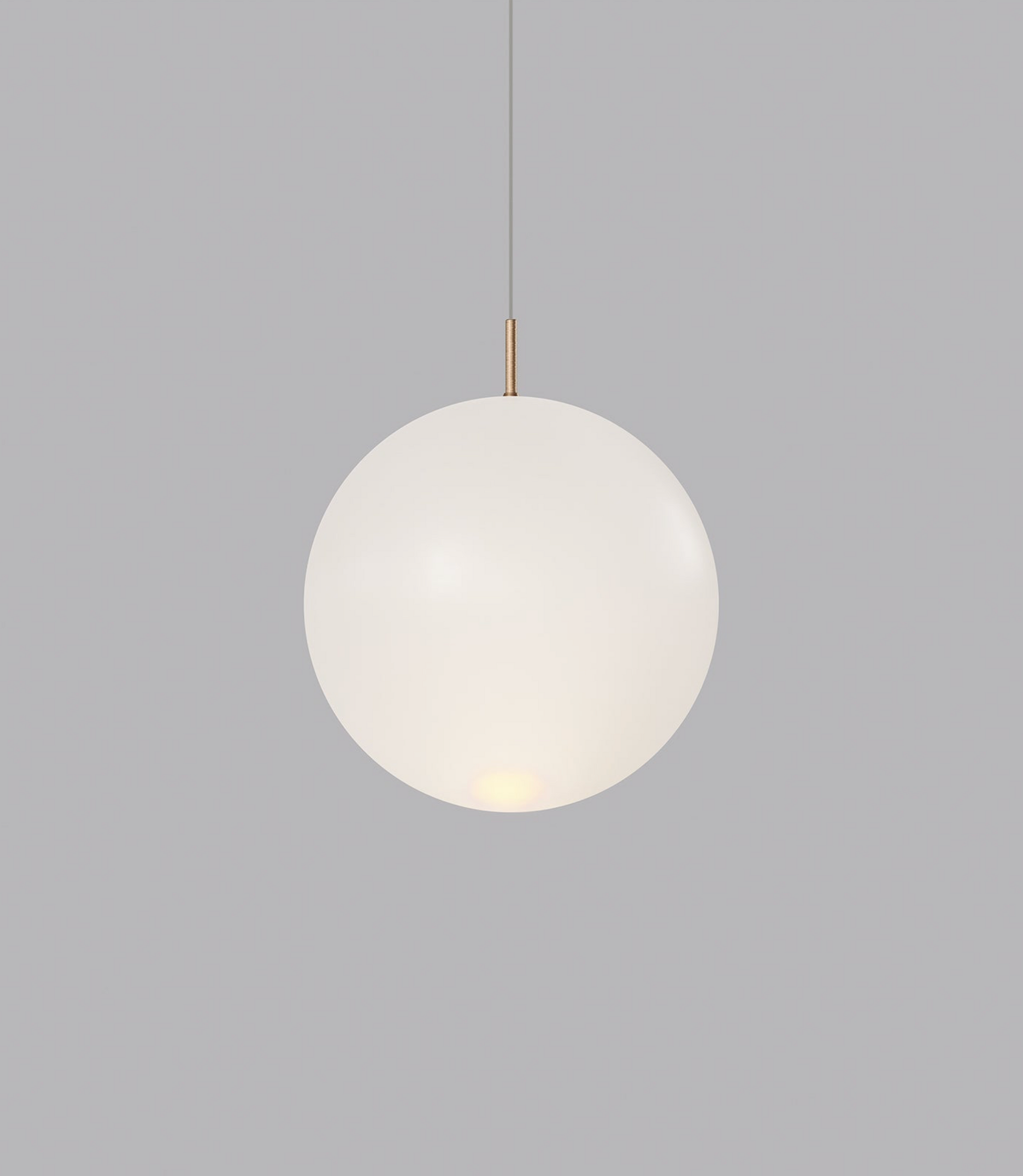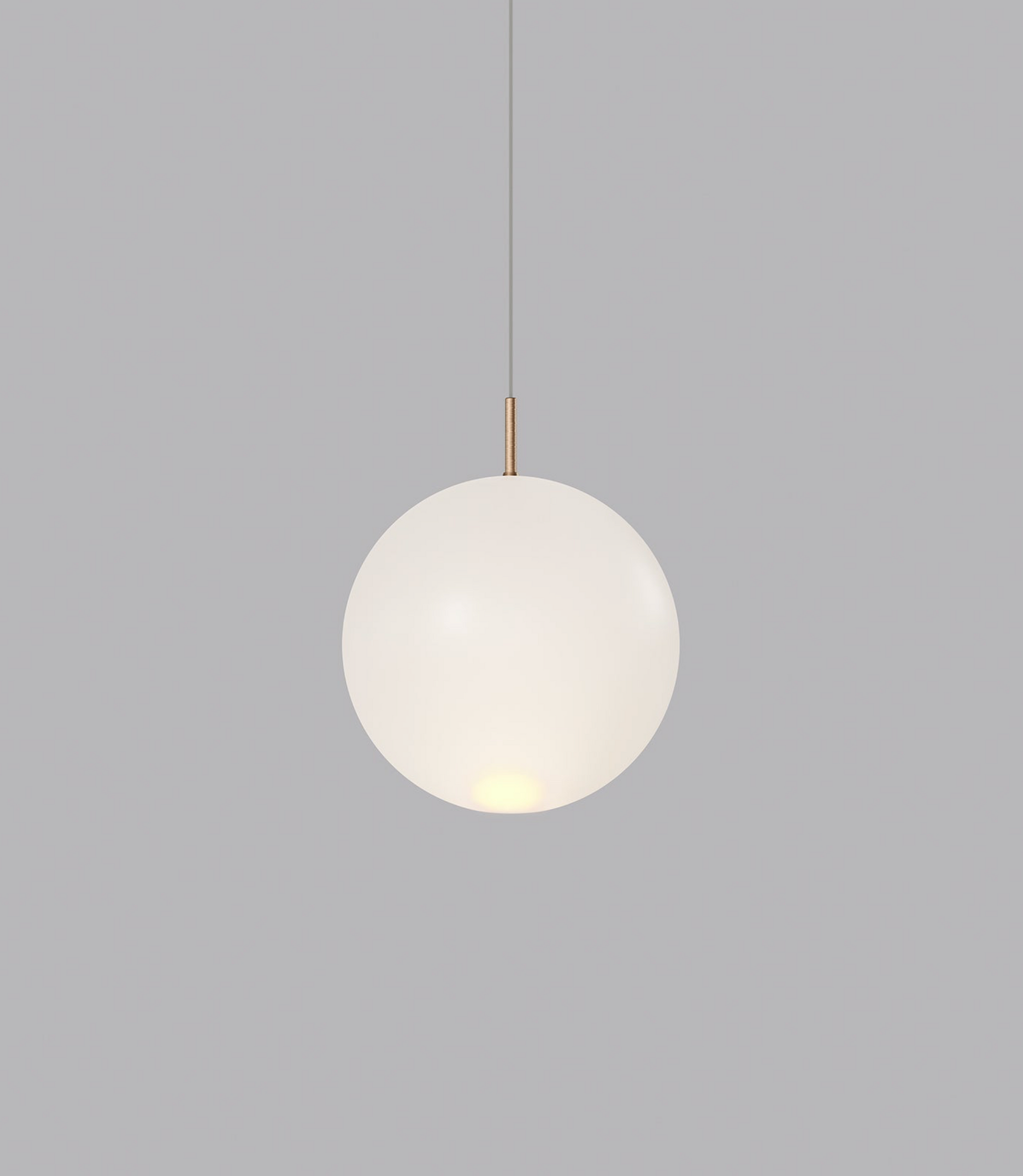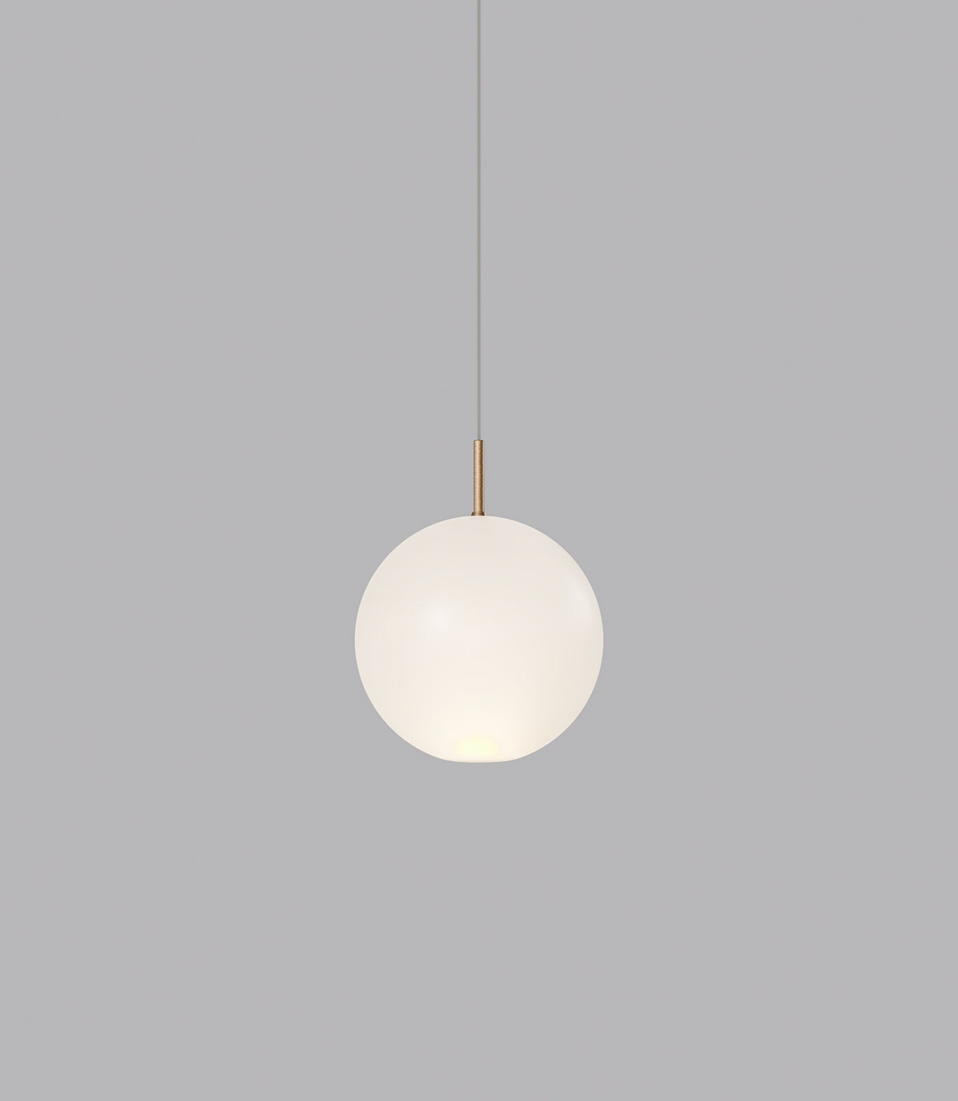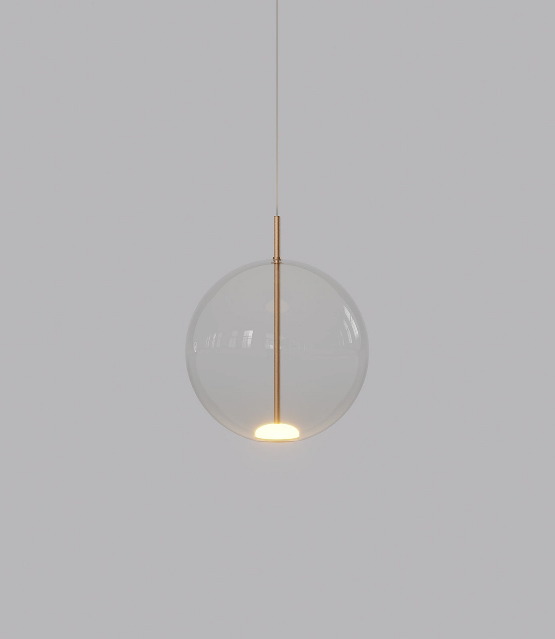 Orb Air Pendant Light showcases a borosilicate glass sphere, meticulously crafted to evoke a sophisticated weightlessness. A refined brass rod intersects the sphere, housing a radiant dimmable LED light source. Orb Air’s familiar yet captivating form emanates a celestial ambience, providing the perfect fusion of contemporary aesthetics and timeless elegance.