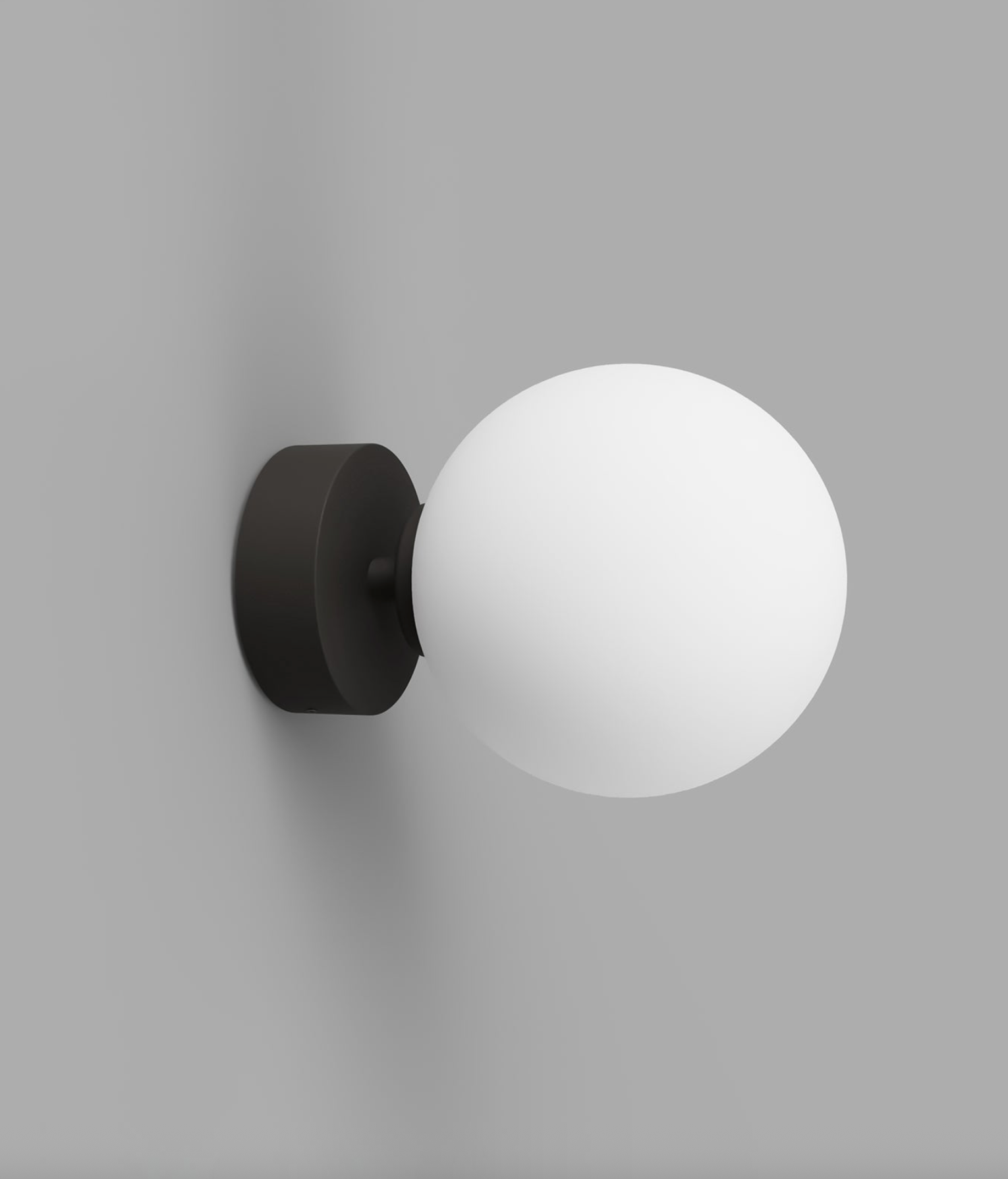 Can also be used as a ceiling light to add ambience to small bathrooms and nooks. Available in three finishes: White, Chrome & Dark Bronze plus two glass sizes: Small (Ø8cm) and Medium (Ø12cm).