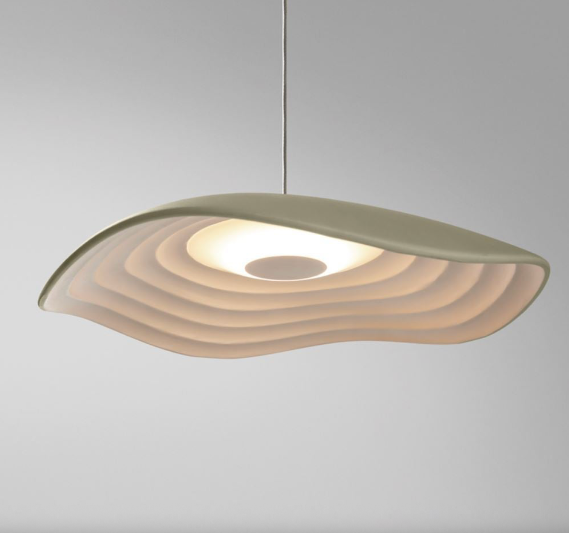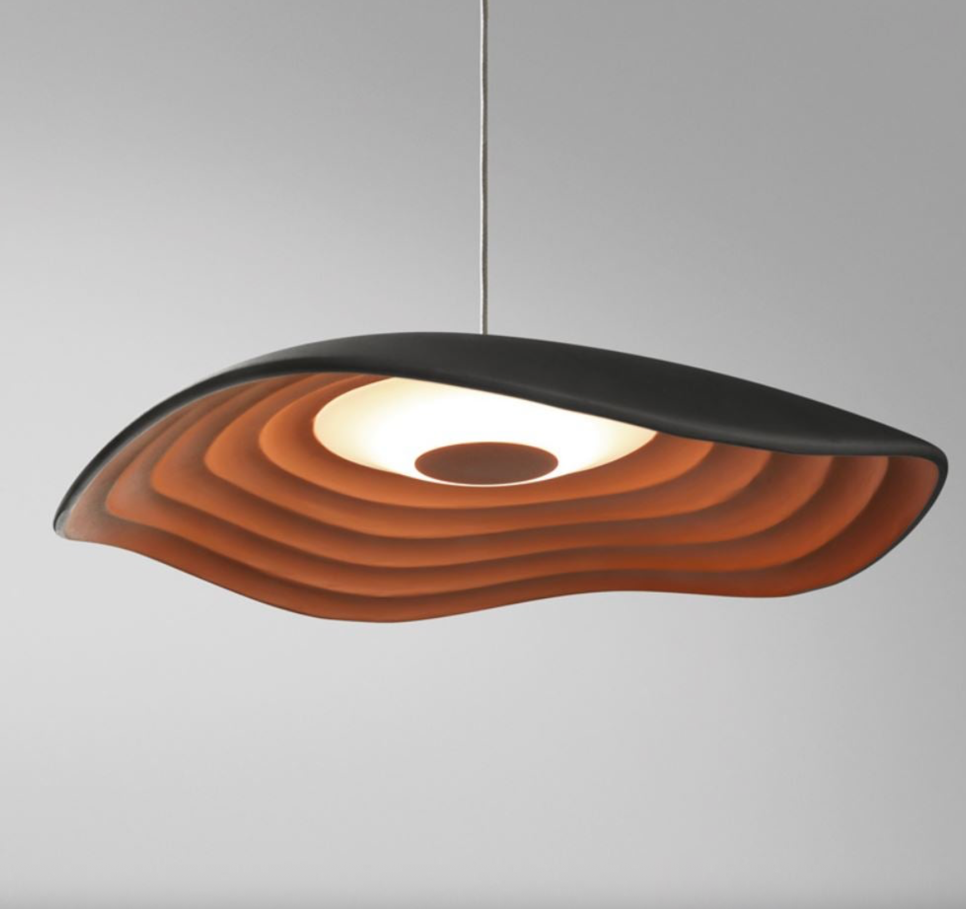 The Valentina Pendant is based on a smooth head which draws a wavy shape on its perimeter, the clear contrast with the lamp inner part, that reminds us of the gentle and small oscillations that marine currents form on the Mediterranean coast.