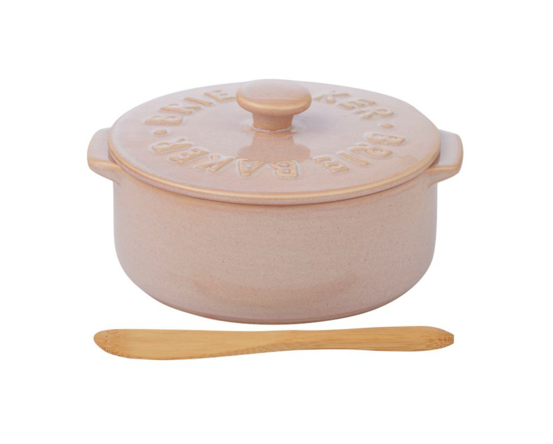 Crafted from handmade ceramic and finished in a delicate blush glaze, Rosa features an embossed lid for a touch of rustic elegance. Each baker comes complete with a natural bamboo spreader, making it as practical as it is beautiful.